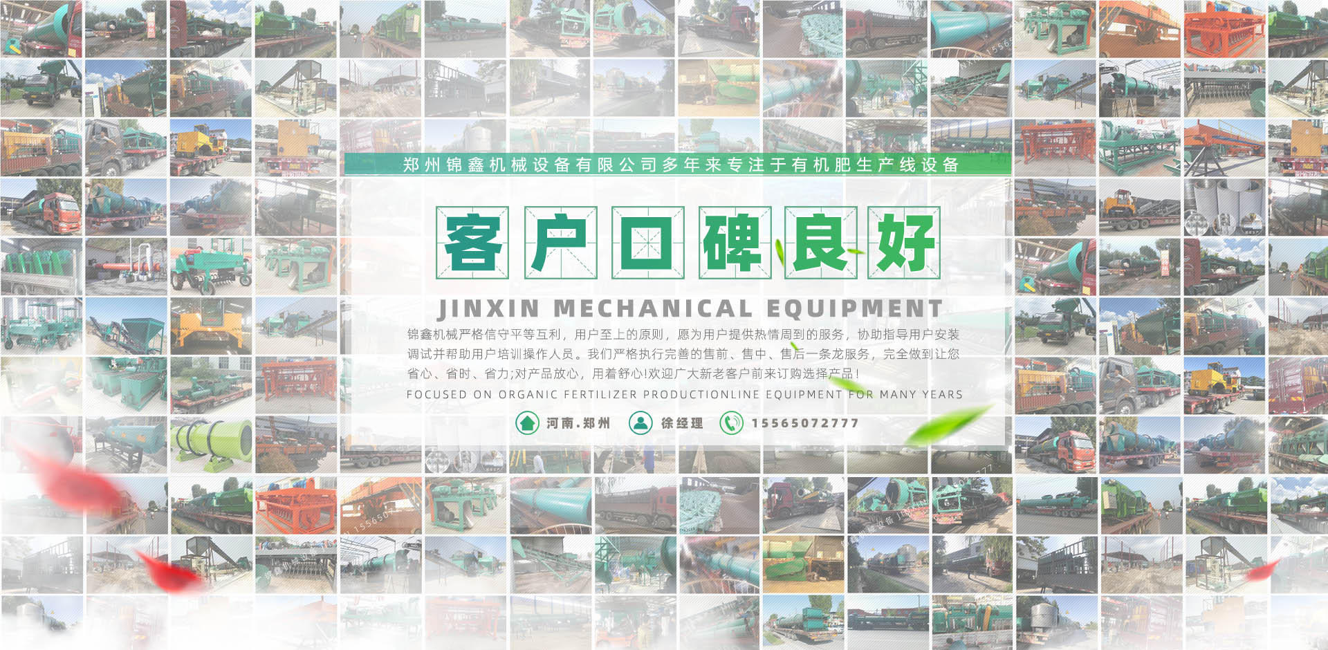 鄭州錦鑫機械設備有限公司,位于機械之鄉的河南省滎陽市,它交通便利,連霍高速公路、鄭州西南繞城高速、隴海鐵路、鄭西客運專線貫穿全境,南水北調、西氣東輸在這里交匯。 公司有技術團隊為企業(yè)生產肥料加工設備,有的合作伙伴,科學、規(guī)范的客戶培訓體系;還有積極健康的企業(yè)文化,不斷創(chuàng)新的管理體制和經營模式和日益完備的經銷網絡。它交通便利,310國道、連霍高速公路、鄭州西南繞城高速、隴海鐵路、鄭西客運專線貫穿全境,南水北調、西氣東輸在這里交匯。 鄭州錦鑫機械設備有限公司是生產有機肥設備機械的企業(yè),產品:有機肥設備,有機肥造粒機,復合肥設備,復合肥造粒機,新型有機肥攪齒造粒機,對輥擠壓造粒機,有機肥生產線,有機肥加工設備,復合肥生產設備,有機肥造粒設備,雞糞烘干機,轉鼓造粒機,bb肥設備等遠銷各地,品質深受肯定! ...